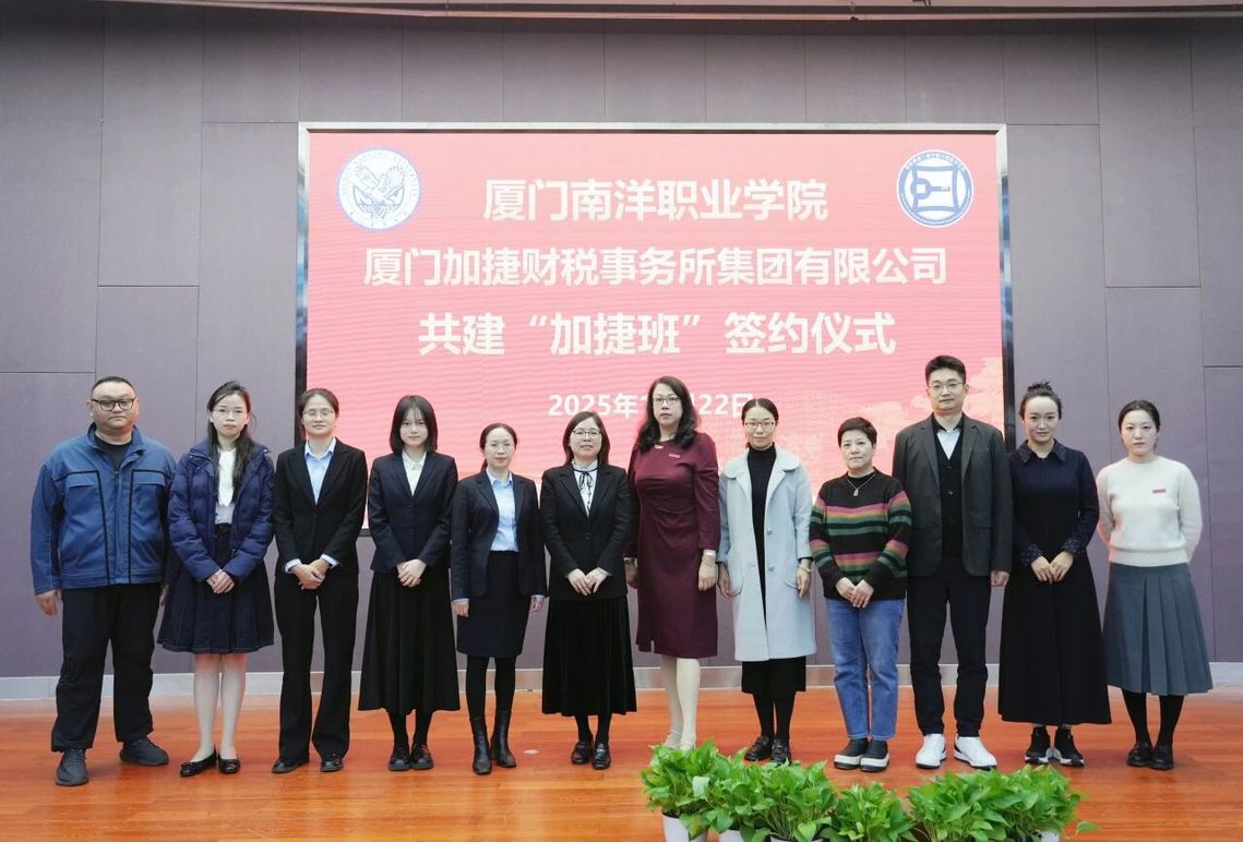 加捷班,是我校与厦门加捷财税事务所集团有限公司共建实现“产学研用”的新模式,旨在精准对接企业需求,深化校企合作内涵,拓展“三元制”人才培养途径,通过共同制定人才培养方案、共建课程体系、共享优质资源等方式,为会计行业培养更多高素质、高技能的应用型人才。
