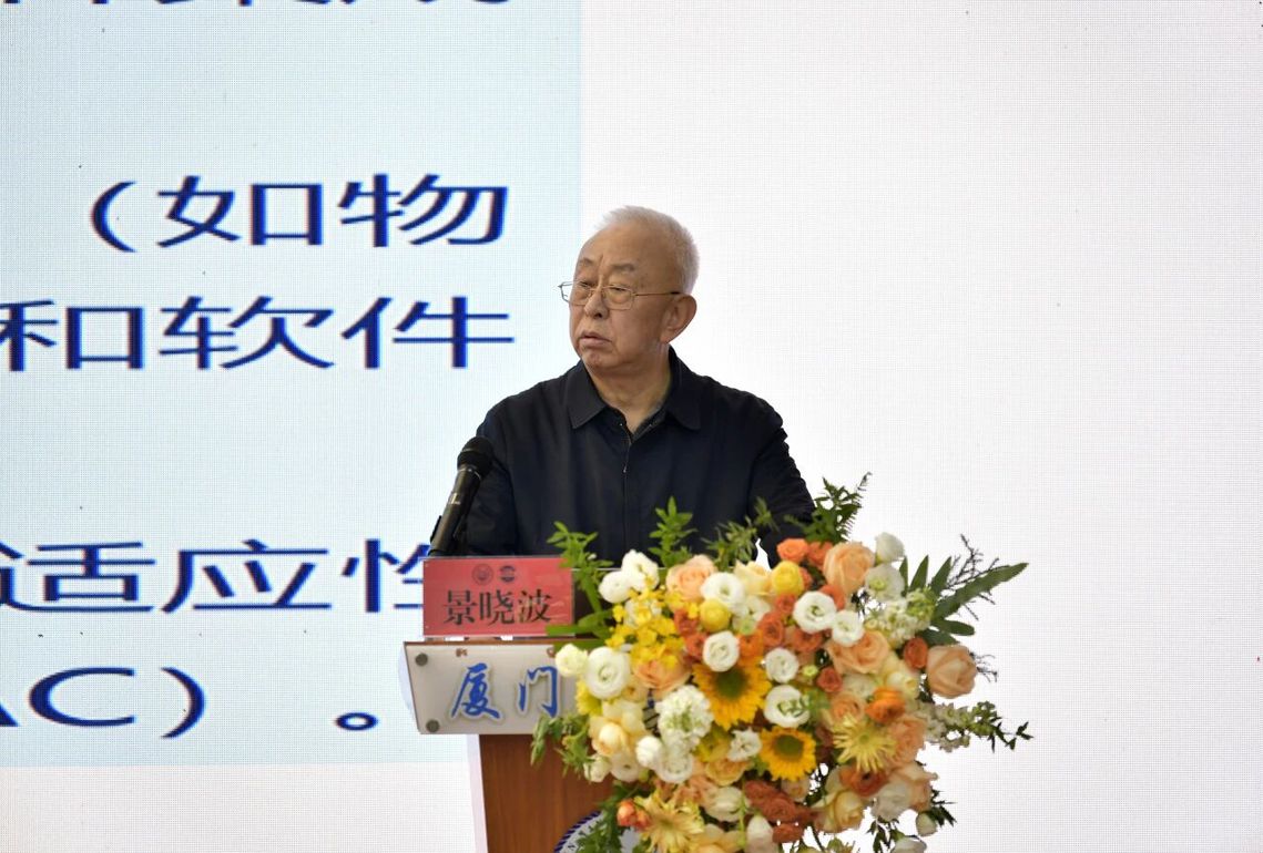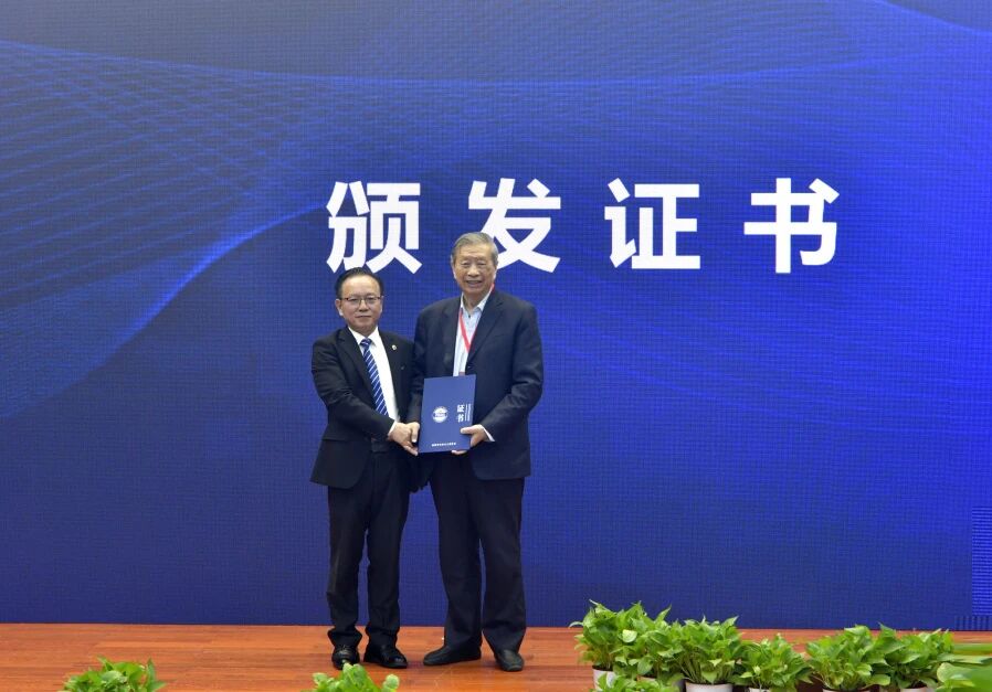 福建省无人机协会会长李健军为刘大响院士颁发福建低空装备首席科学家证书。
