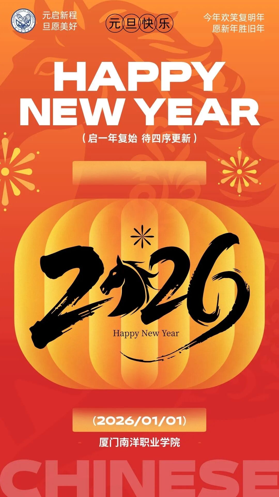 厦门南洋学院恭祝大家新年快乐!
