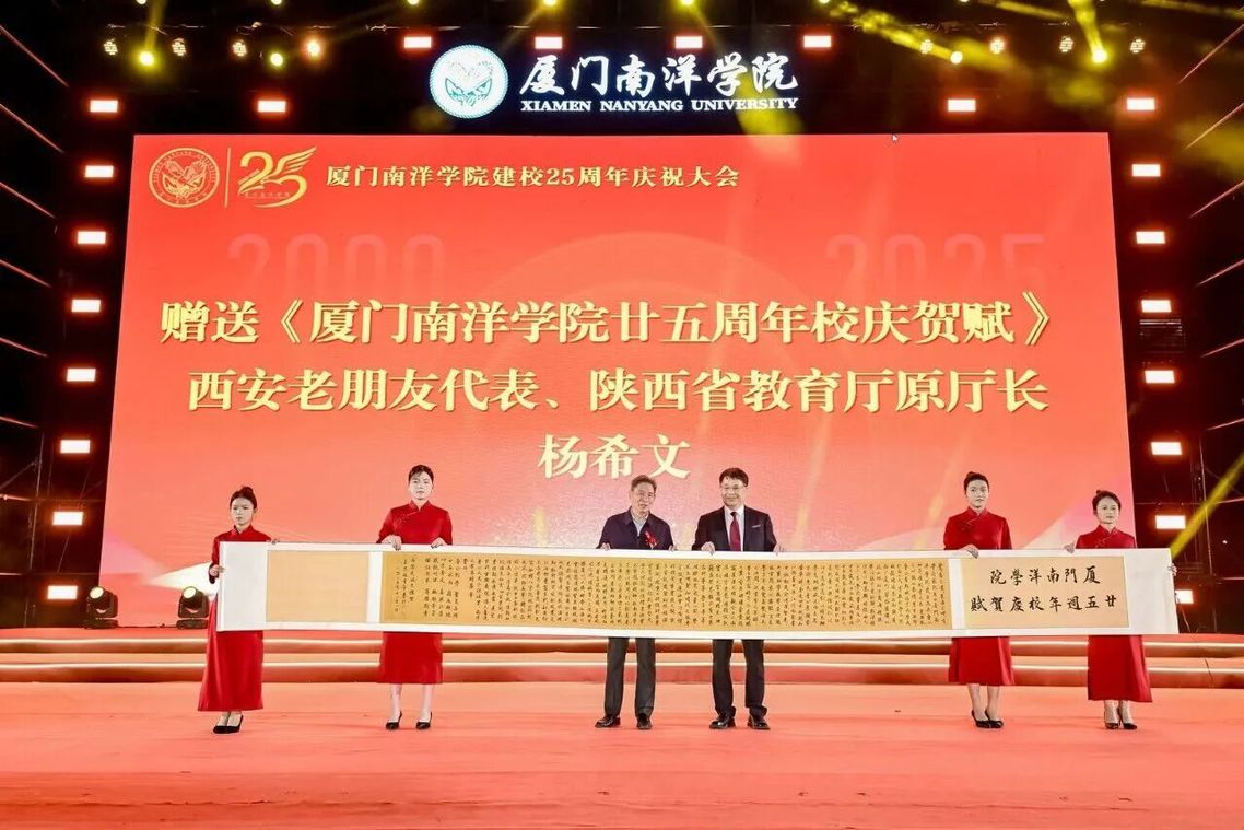 11月1日,厦门南洋学院建校25周年庆祝大会在金尚田径运动场顺利举行。各界领导、嘉宾,校企合作伙伴,海内外校友,学校历任、现任领导以及教职工和学生代表三千余人齐聚一堂,共同庆祝南洋学院廿五华诞。此外,学校还收到了116家单位发来的贺信,以及多位老领导、老朋友专门撰写的《校庆贺赋》。