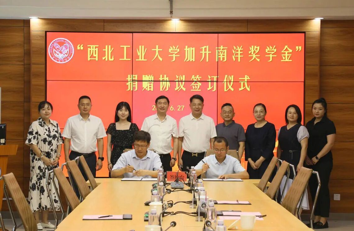 2023年6月,在厦门南洋学院第一会议室举办“西北工业大学加升南洋奖学金”捐赠协议签订仪式
