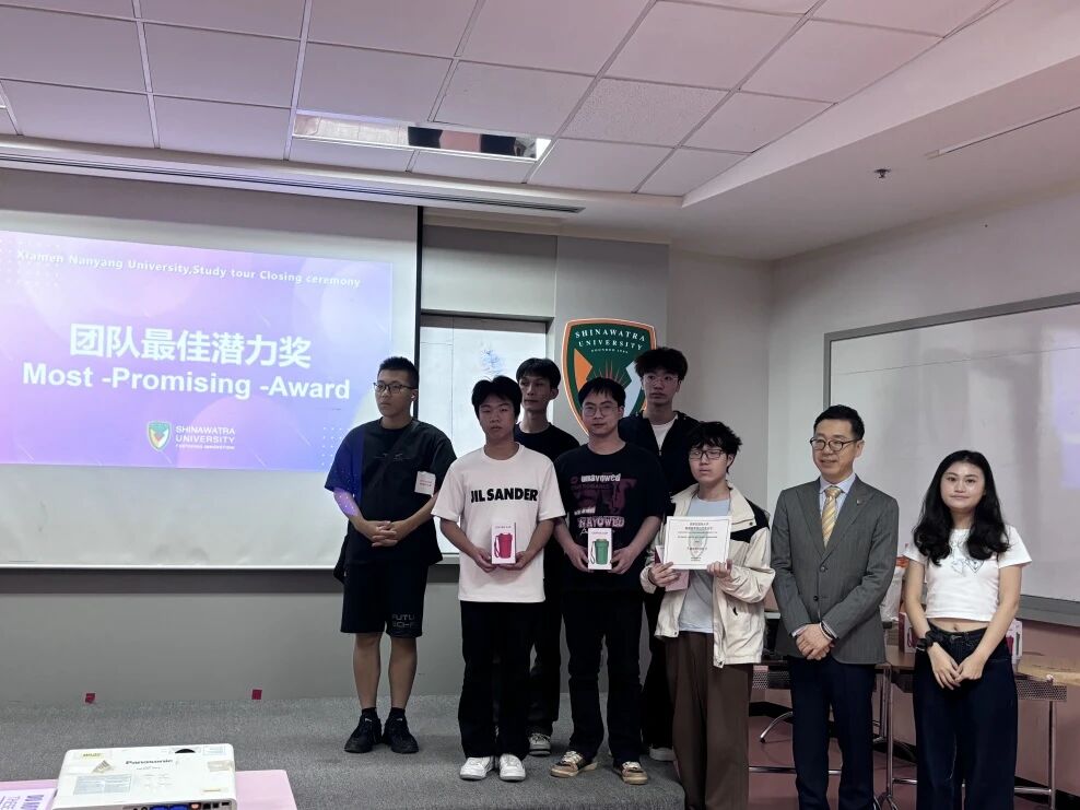2025年6月18日,泰国西那瓦国际大学结营仪式 学生肖振宇(左二)团队获得“最佳潜力奖”