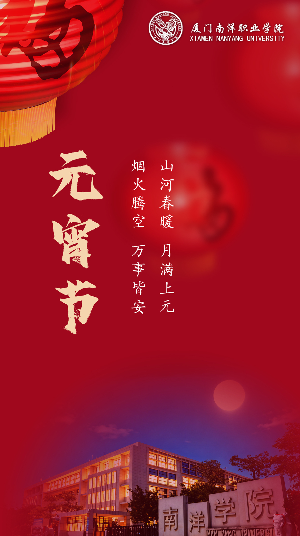 厦门南洋学院祝大家元宵节快乐!