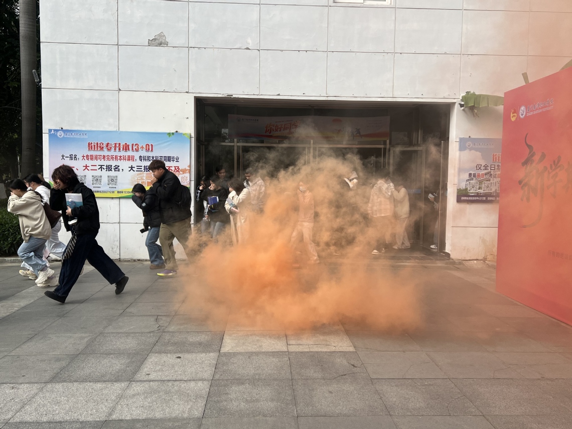 本次演练以教学楼突发火灾为模拟场景。演练启动后,校园内相关消防设施设备及时报警,任课老师引导学生按照“低楼层优先、高楼层依次”的原则,弯腰捂鼻、低姿前行,有序从就近安全楼梯快速撤离,全程不推挤、不慌乱、不逗留。在教师的引导下,全体师生顺利向时代广场集结点转移,整个疏散过程衔接顺畅、高效有序,圆满完成疏散任务。